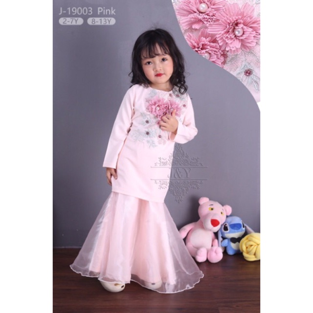 Raya 2021 Readystock Pink Baju Kurung Budak With 3d Pink Flower 2y 6y 11y 12y 13y Shopee Malaysia